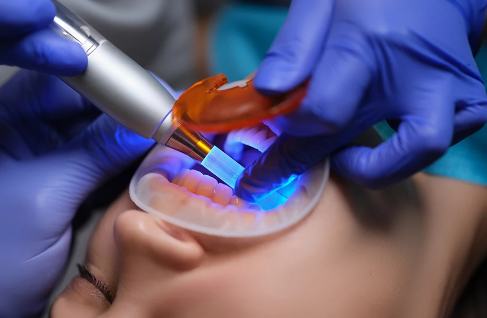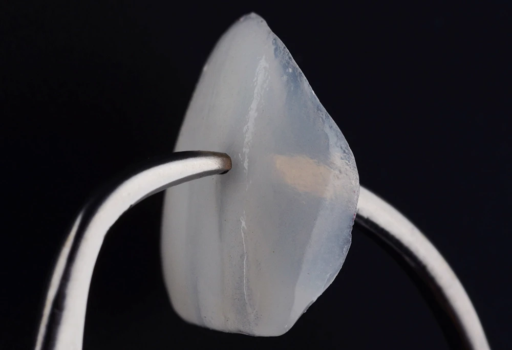Готовые виниры примеряют на зубы, чтобы пациент мог оценить эстетику, посадку. После утверждения результата изделия фиксируют на сверхпрочный цемент.